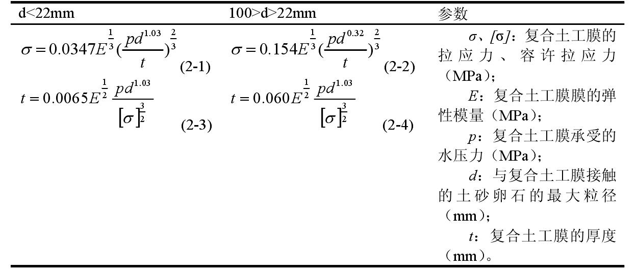 在初步选定防水国内精品久久久久久久影视麻豆布材料的理论计算中,主要考虑了水压力对膜厚度的要求,在实际工况中,除了水压力外,会增加土压力、毛细水压力等不同力的综合作用,同时公式中选用的砂砾石为理想状态,假定不存在棱角和尖刺,实际工程中可能出现块石或有较尖边缘的回填料,在对膜厚度的选定时应留出较大的安全系数,技术规范中建议采用4至5倍的安全系数。