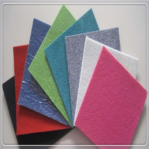 展览地毯是短纤维经过不同的设备和工艺铺排成网状,在经过针刺等工艺让不同的纤维相互交织在一起,相互缠结固着使织物规格化,让织物柔软、丰满、厚实、硬挺,以达到不同的厚度满足使用要求。针刺成型的坯布再经过背面上胶,烘干定型,切边,成卷包装。